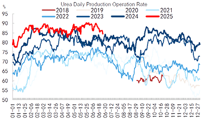 Phosphorus: the avg. price slid to CNY22,000-22,200/t in Yunnan/Guizhou/Sichuan, down 1.3%-1.35% WoW due to weak demand and increased supply. The operation rate is still